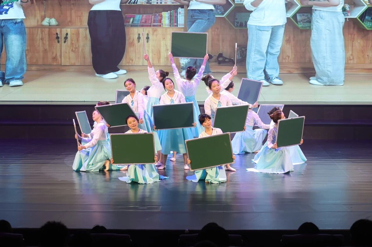 舞蹈《薪火・花开处》用优美的肢体语言,表达一届又一届庆师学子迈出校门,走向广阔天地的憧憬;合唱《向光远航》则以恢宏的歌声,唱出庆师学子肩负使命、砥砺前行的坚定决心。最后,全场齐声高唱《歌唱祖国》,为整场活动画上圆满而有力的句号。