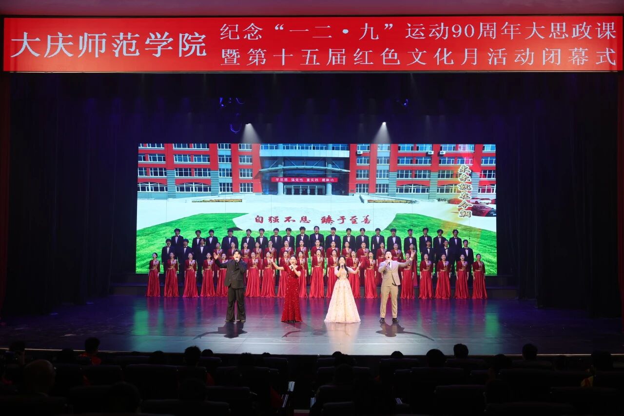 为纪念“一二・九”运动90周年,弘扬爱国主义精神,引领青年学子传承红色基因、坚定理想信念,12月8日晚,大庆师范学院在大学生活动中心举行“传承红色薪火 奋进时代征程”纪念“一二・九”运动90周年大思政课暨第十五届红色文化月活动闭幕式。校长、党委副书记张平,党委副书记滕强,党委副书记、工会主席刘迪,副校长周丹、王洪秋,党委委员、宣传统战部部长徐媛等校领导出席,与各机关部门、二级学院负责人、辅导员及学生代表共同观看这堂融思想性、艺术性、教育性于一体的大思政课。