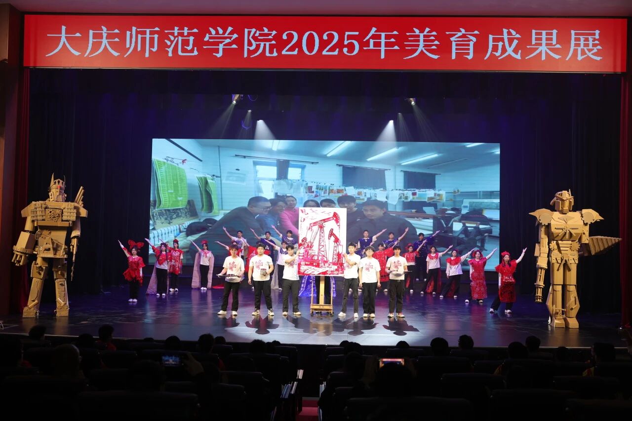 美育精品展《指尖裁锦绣 版拓铸匠心—剪纸版画传承》立足大庆红色资源,将剪纸、版画等传统艺术与红色主题相结合,展现了文化传承与精神弘扬的创新融合;朗诵《永远的号子》以饱满的情感与铿锵的话语,致敬铁人,致敬石油人,抒发“我为祖国献石油”的豪迈情怀。