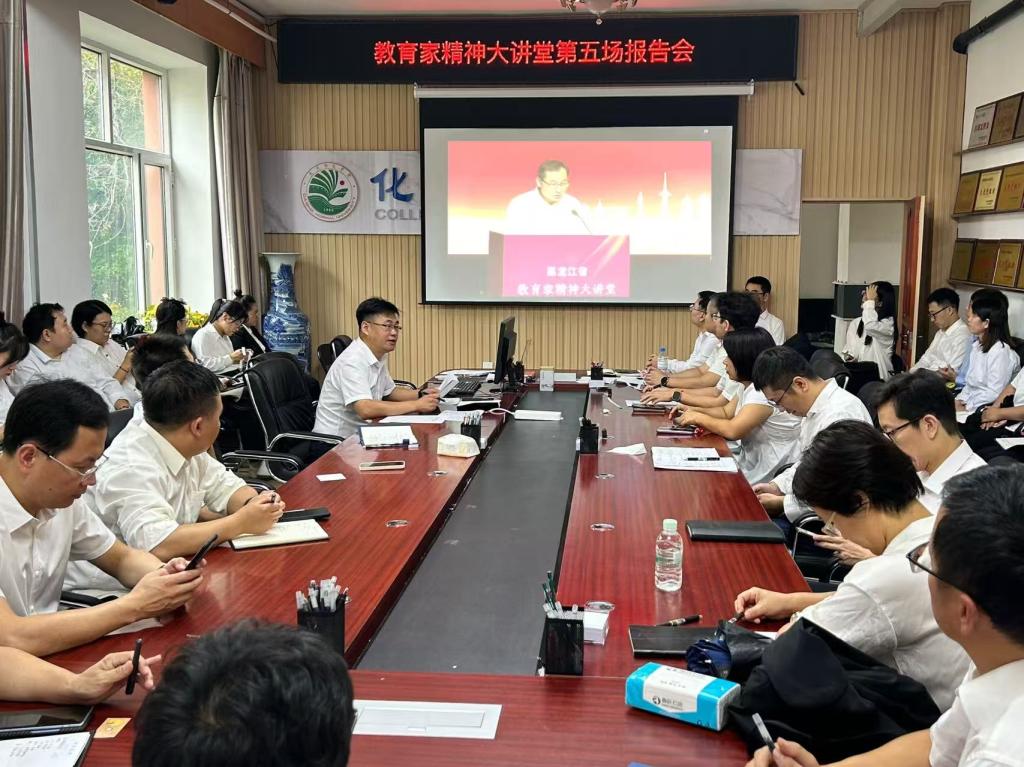 为贯彻落实习近平总书记关于弘扬教育家精神的重要指示精神,弘扬教育家精神,激励广大人民教师践行教育家精神,9月5日下午,教育家精神大讲堂第五场报告会在哈尔滨工程大学举行,我校组织教师线上收看了黑龙江省“教育家精神大讲堂”第五场报告会直播。