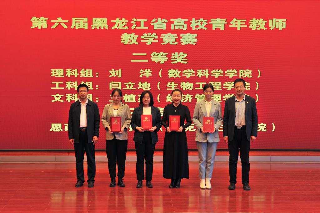在宣读了《大庆师范学院关于2023年青年教师教学竞赛表彰通报》后,党委副书记、工会主席徐晓东和副校长张平为第六届黑龙江省高校青年教师教学竞赛获奖者,本次学校竞赛一、二、三等奖获得者颁发了获奖证书。