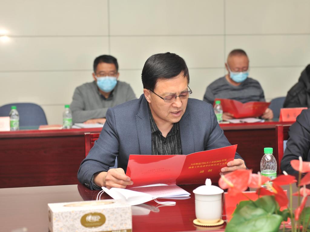 党委副书记、工会主席徐晓东宣读《大庆师范学院关于表彰2022年度就业工作先进单位和先进个人的通报》,授予计算机科学与信息技术学院、数学科学学院、教师教育学院、经济管理学院、化学工程学院、美术与设计学院 “2022 年度就业工作先进单位”荣誉称号,授予常贺、陈鑫、王鑫、高巍、李欣、孙健、张彪、贾连广、苏鸿鹏、陶丽娟、汪丽媛、徐宏书、陈超、杨晓玉14位同志“2022 年度就业工作先进个人”荣誉称号。