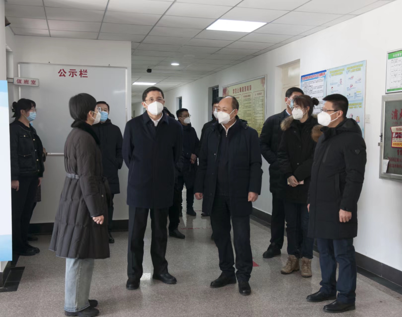 2月20日省教育厅副厅长董成一行莅临我校检查指导2023年春季开学准备及疫情防控工作。校长乔志和,党委副书记、工会主席徐晓东,副校长张平以及相关处室负责同志陪同检查。