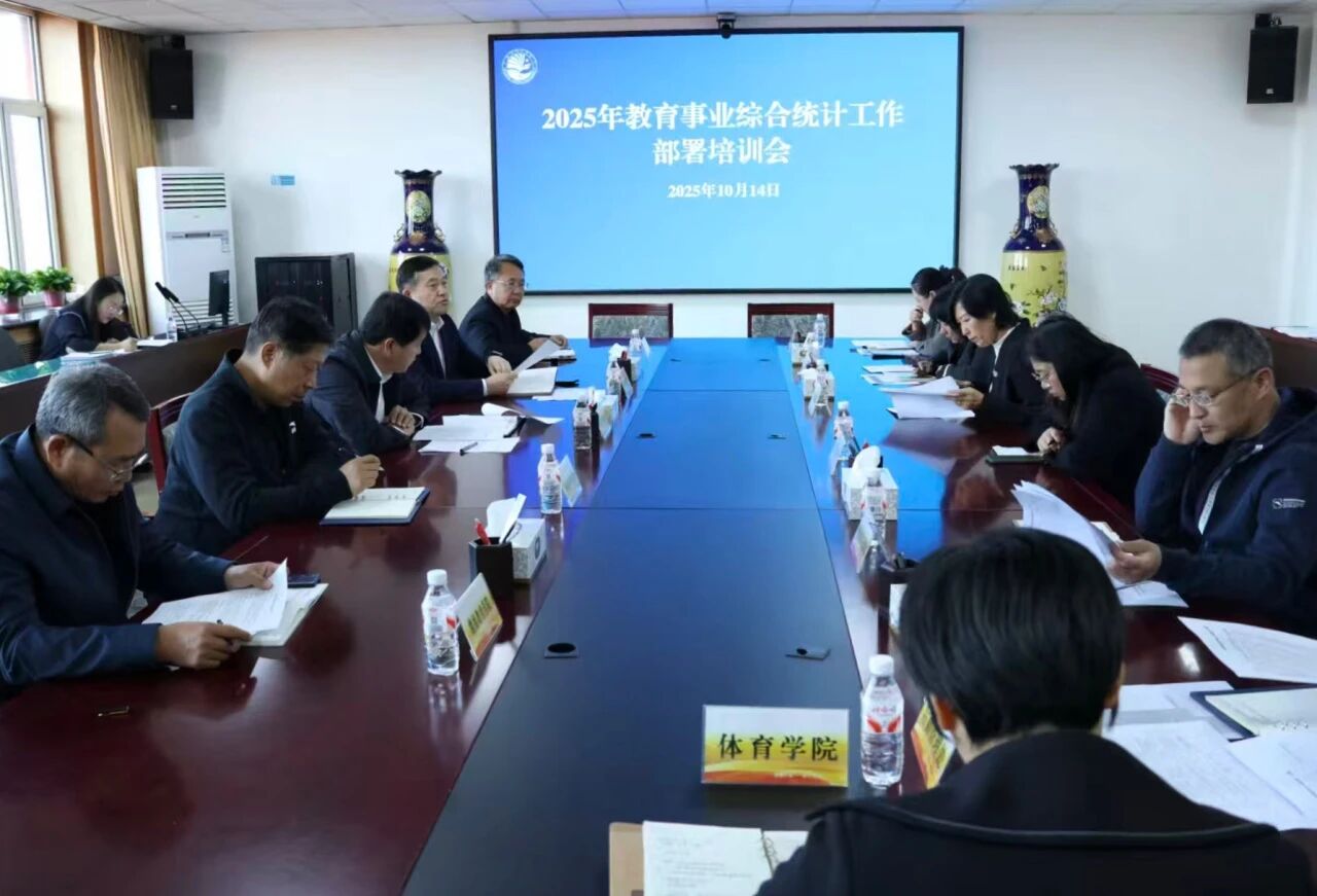 10月14日下午,学校在主楼634会议室召开2025年教育事业综合统计工作部署培训会。副校长康忠伟出席会议。组织部、宣传统战部、办公室、学生工作部、团委、教务处、科研处、人事处、国有资产管理处、对外合作与交流处、招生就业处、保卫处、后勤管理处、继续教育学院、现代教育技术中心、图书馆、体育学院部门(学院)负责人及统计工作人员参会。会议由康忠伟主持。