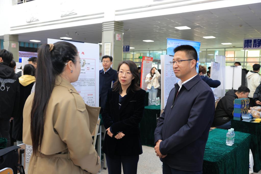 10月22日,“情系黑土地 就业在龙江”大庆师范学院2026届毕业生秋季大型招聘会在学校图书馆举行。校长、党委副书记张平,党委副书记滕强,党委副书记、工会主席刘迪亲临现场巡视指导,与用人单位深入沟通交流。招生就业处相关负责人、各二级学院党政领导、毕业生辅导员参加活动,为求职学生提供就业指导服务。