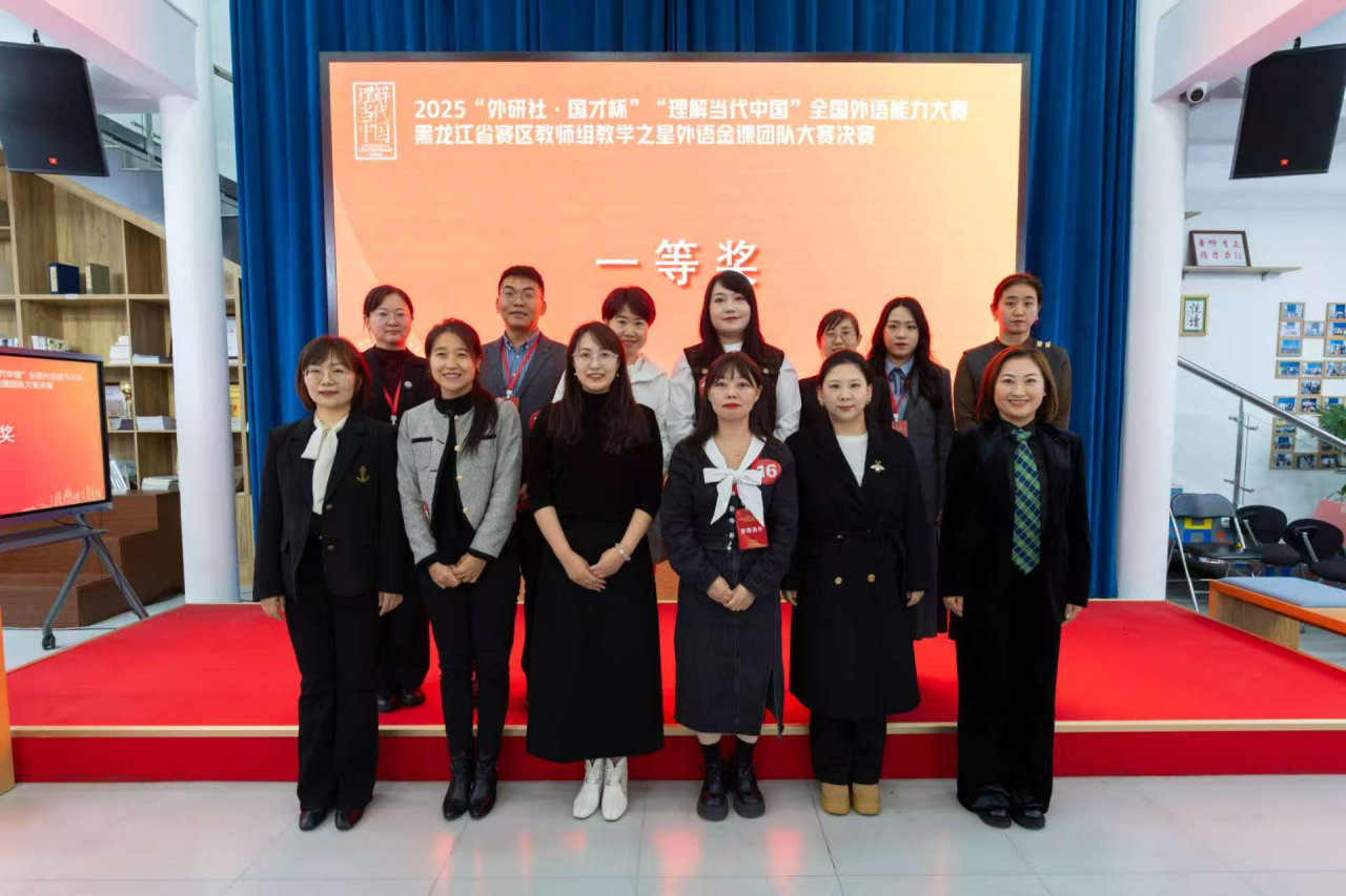 近日,2025年“外研社·国才杯”“理解当代中国”全国外语能力大赛黑龙江省赛区教师组决赛圆满落幕,我校外国语学院教师团队喜获佳绩。由卢岩、刘晓旭、张小川老师组成的团队凭借其专业功底与数智化教学实践,荣获省级一等奖;张文静、柴伟、李晶老师团队亦斩获三等奖。此次竞赛充分彰显了我校教师卓越的教学风采与团队协作精神,是我校深化“三进”教学、推动外语教学改革创新的重要成果,有效提升了育人质量,为我校师范特色建设贡献了力量。(来源:外国语学院 撰稿:刘晓旭 审核:邱晓东)