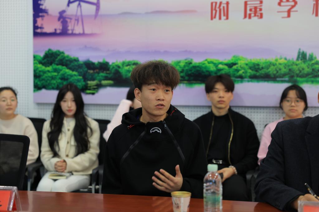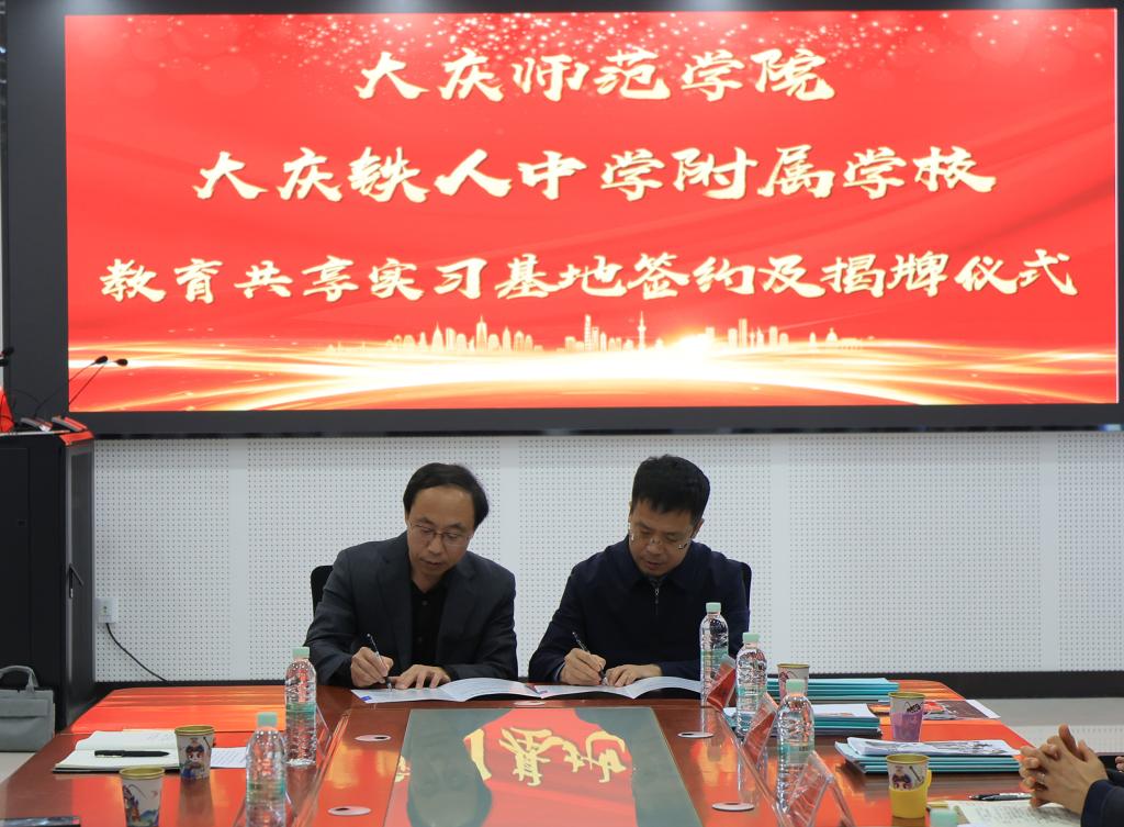 在大庆铁人中学附属学校,座谈会由该校副校长殷克军主持,铁中附校领导班子、我校两名集中实践锻炼教师及实习、见习学生代表参加。会上,该校书记蒋严学围绕两校在教育实习、师资培训、微课题研究、科学实验室建设及党建工作等方面的深化合作提出需求;副校长于春媛介绍了2位实践锻炼教师的工作推进情况,以及混合编队师范生实习、见习的具体表现。实践锻炼教师代表代丽平和师范生代表同样分享了两月来的实践感悟与收获,我校学院领导与师生展开深入交流。会议期间,大庆师范学院与大庆铁人中学附属学校举行了教育共享实习基地签约及揭牌仪式,标志着两校在协同育人领域的合作迈入新阶段。
