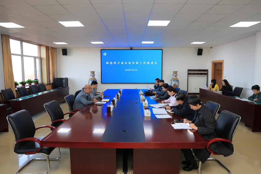 11月12日下午,学校在主楼633会议室召开师范类专业认证申报工作推进会,专题部署美术学、俄语、体育教育专业认证自评自建、申报受理准备工作。副校长周丹主持会议并讲话,教学质量评估中心负责人及相关工作人员,相关学院党总支书记、院长、教学副院长及专业负责人、专任教师代表参加会议。