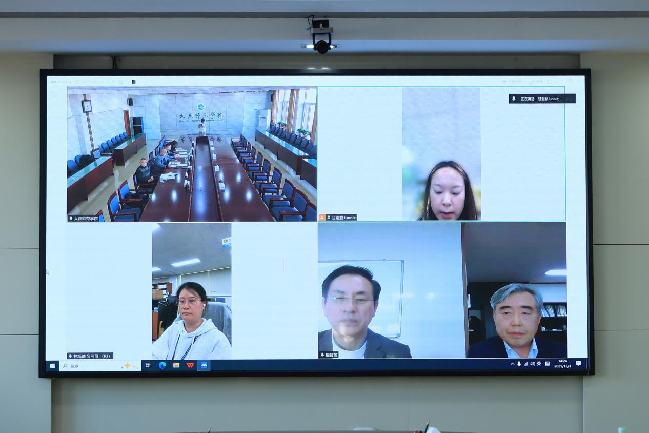 会上,周丹首先代表大庆师范学院,向韩方参会人员致以诚挚问候,并介绍我校参会人员及学校基本办学情况。他表示,大庆师范学院始终重视国际化办学布局,此次与极东大学的合作,是学校拓展国际教育资源、提升人才培养质量的重要举措,期待双方以此次会议为契机,高效推进中外合作办学各项事宜。