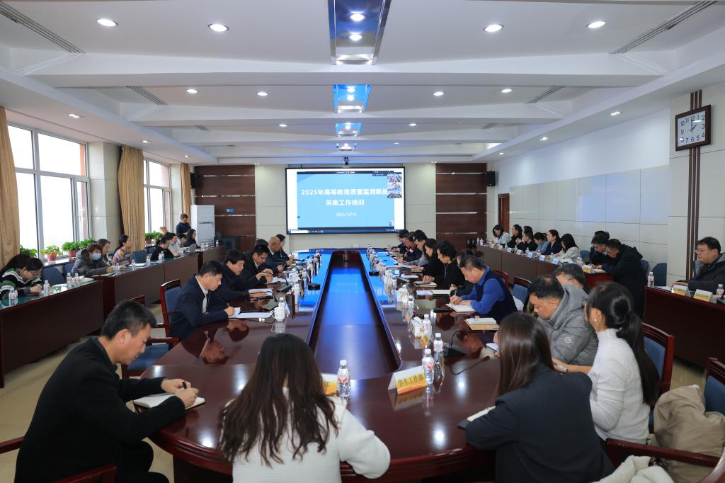 12月18日下午,学校在主楼733、633会议室组织开展高等教育质量监测2025年数据采集线上培训。校长、党委副书记张平,党委副书记滕强,副校长、党委委员康忠伟,副校长周丹,副校长、党委委员王洪秋,党委委员、宣传统战部部长徐媛,相关部门负责人,各学院院长,各相关部门、各学院数据填报人,数据分析工程师参加会议。会议由康忠伟主持。