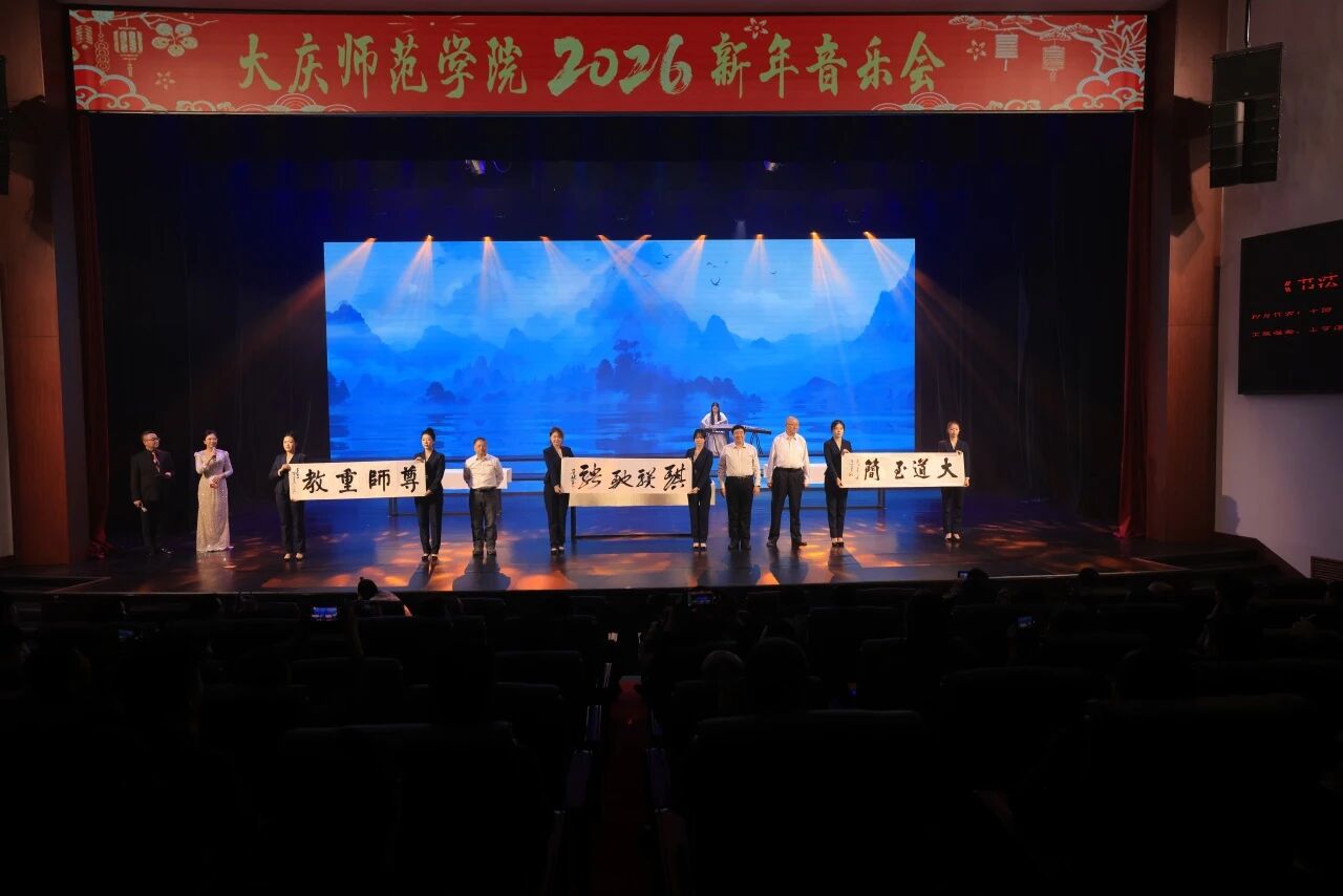 夜幕降临,大学生活动中心流光溢彩,大庆师范学院2026新年音乐会温情奏响。校友深度参与成为本次音乐会的最大亮点。晚会以激昂的民乐合奏拉开帷幕,《盛世霓裳》《咏春》等舞蹈节目衣袂翩跹、舞姿曼妙;王璟、丁德荣、李敏三位校友现场挥毫泼墨,行云流水的笔墨与悠扬的古筝伴奏相映成趣,尽显文化底蕴;诗朗诵《这里!是我们出发的地方》《母校庆师我眷恋的家》等校友原创作品,裹挟着岁月的温度,勾起全场校友的青春记忆。整场晚会融合民乐、舞蹈、诗朗诵、书法等多元艺术形式,学子的青春朝气与校友的温情关怀交织相融。从节目创作到舞台展演,处处饱含“回家”的深厚情谊,让校友情谊与新年期许在悠扬乐声中不断升华。音乐会后,“冰雪陶浴”开窑仪式在大学生活动中心广场温馨启幕,红火的窑火映照一张张欢欣的笑脸,象征着母校与校友的情谊历经时光淬炼愈发醇厚,更寓意着全体庆师人将在新的一年里踔厉奋发、再创佳绩。