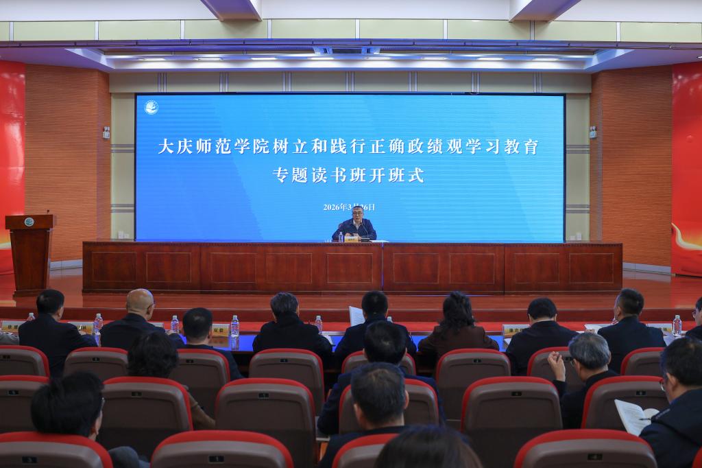 3月26日,大庆师范学院树立和践行正确政绩观学习教育专题读书班开班。党委书记赵科学主持开班式并作动员讲话,校院两级领导班子成员、全体副处级以上干部参加。